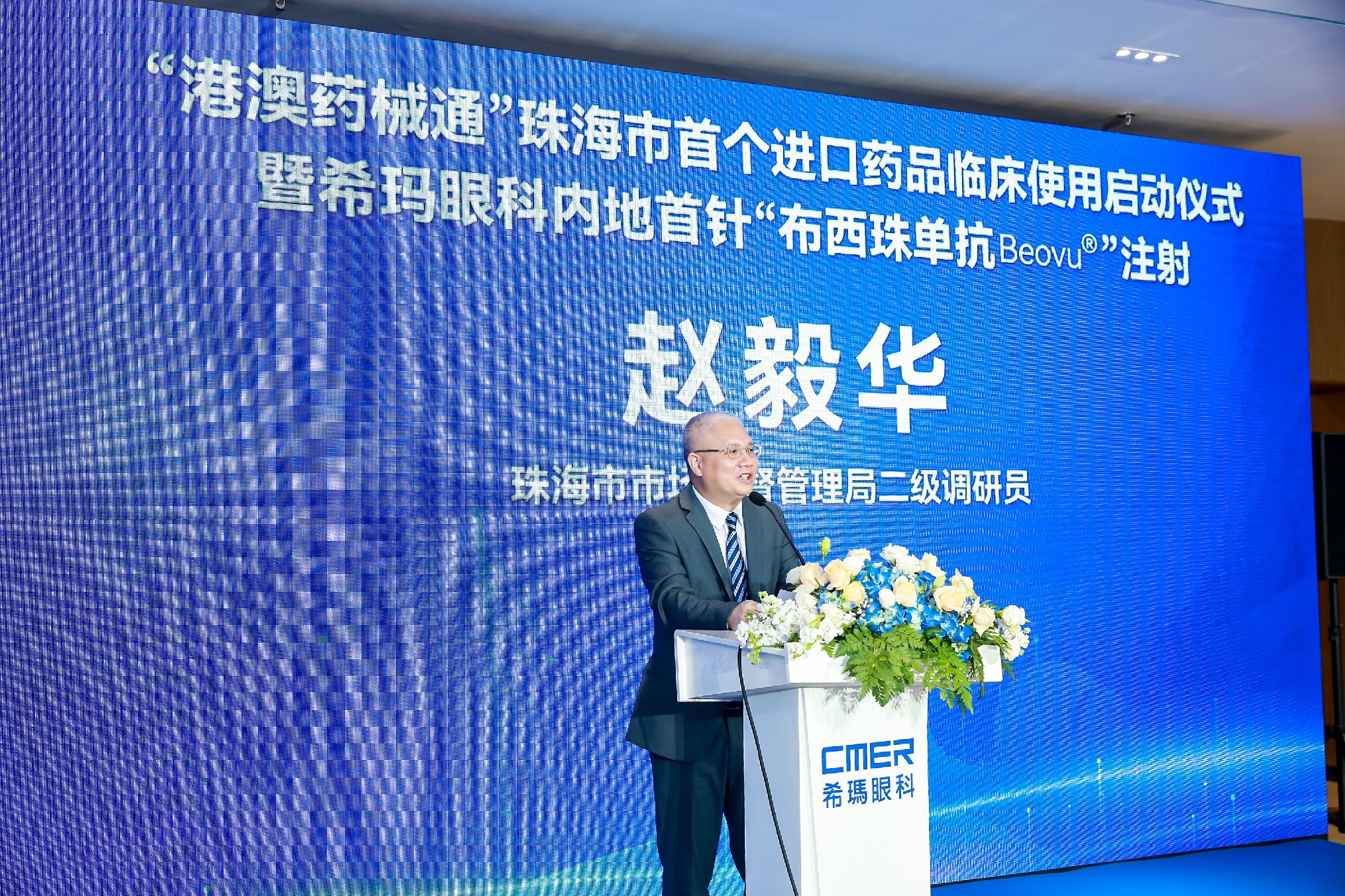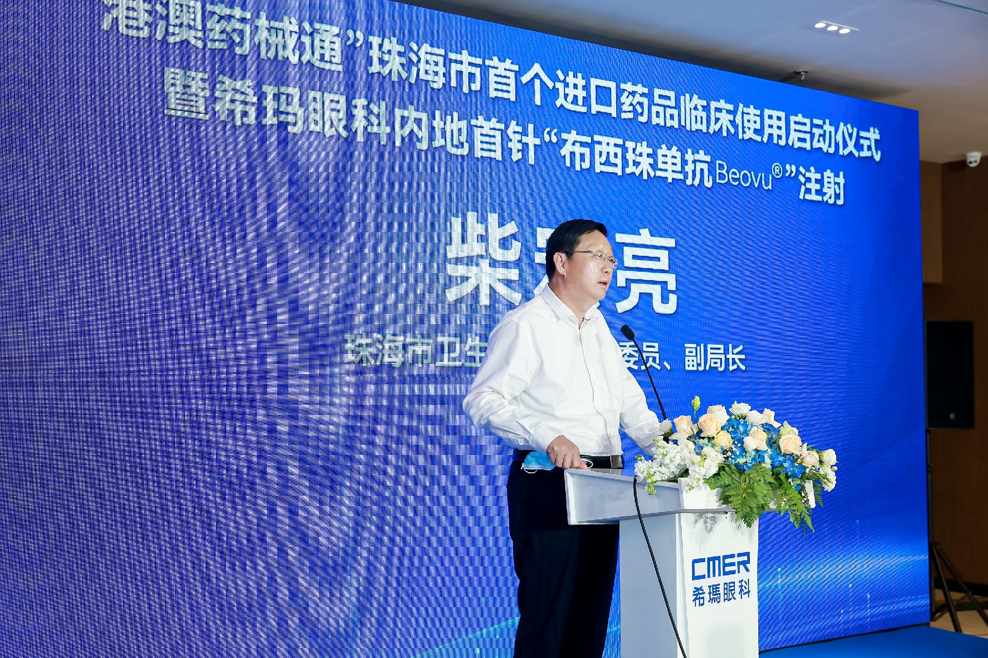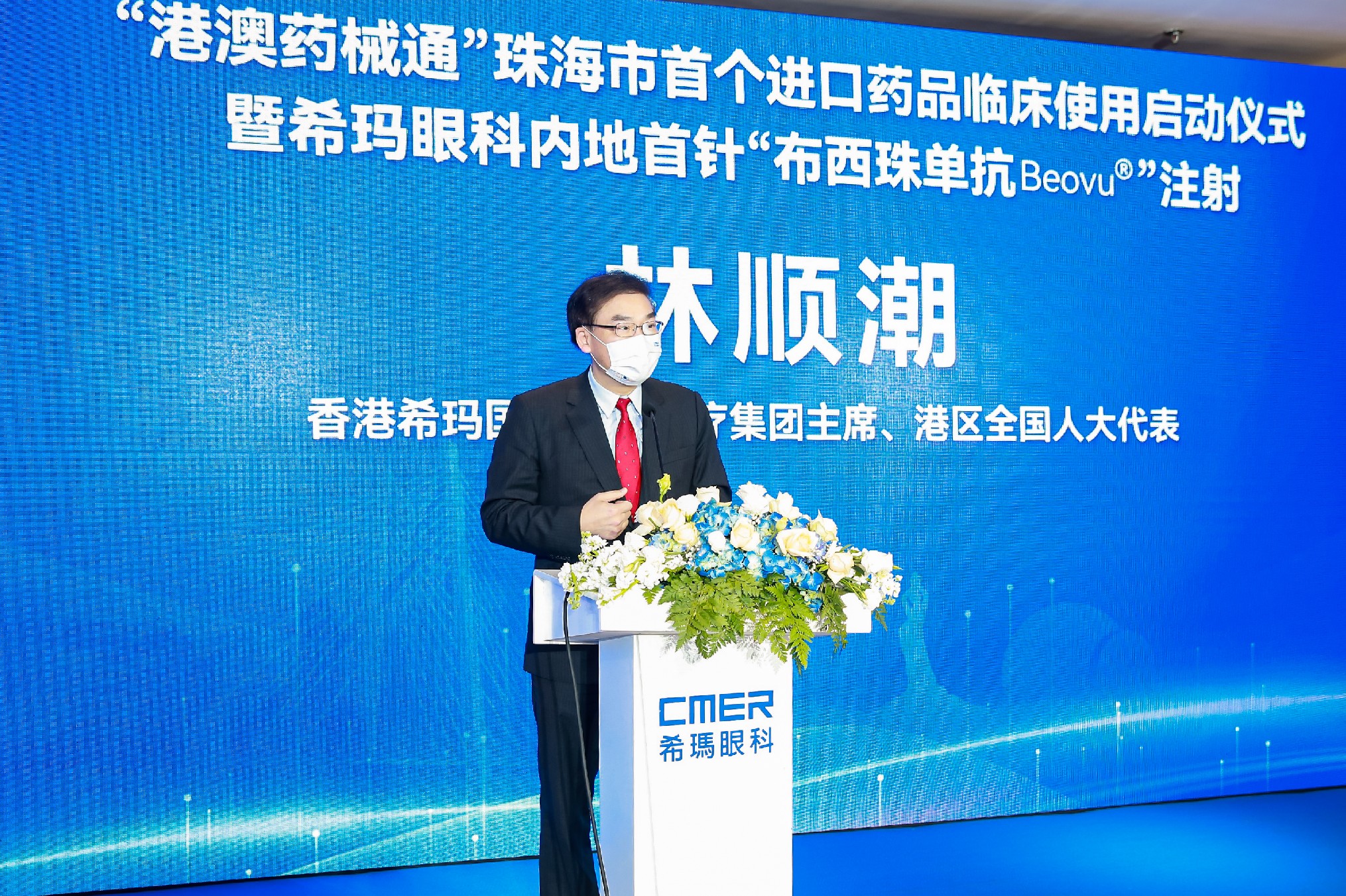 2022年3月27日上午,由广东省卫生健康委员会、广东省药品监督管理局指导,珠海市卫生健康局、珠海市市场监督管理局主办,香港希玛国际眼科医疗集团、珠海希玛林顺潮眼科医院,北京诺华制药有限公司以及华润广东医药有限公司共同承办的“‘港澳药械通’珠海市首个进口药品临床使用启动仪式暨希玛眼科内地首针‘布西珠单抗Beovu®’注射”在珠海希玛林顺潮眼科医院圆满举行。