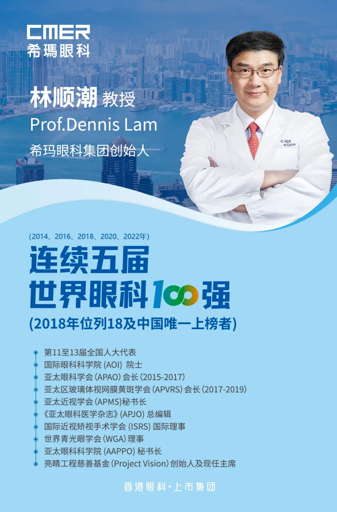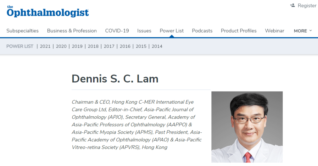 从2014年开始,《The Ophthalmologist 》每两年推出一次世界眼科人物具影响力100强榜单,以表彰在眼科领域取得成就的杰出贡献者。今年是林顺潮教授继2014、2016、2018、2020年后,第5次入选该榜单。