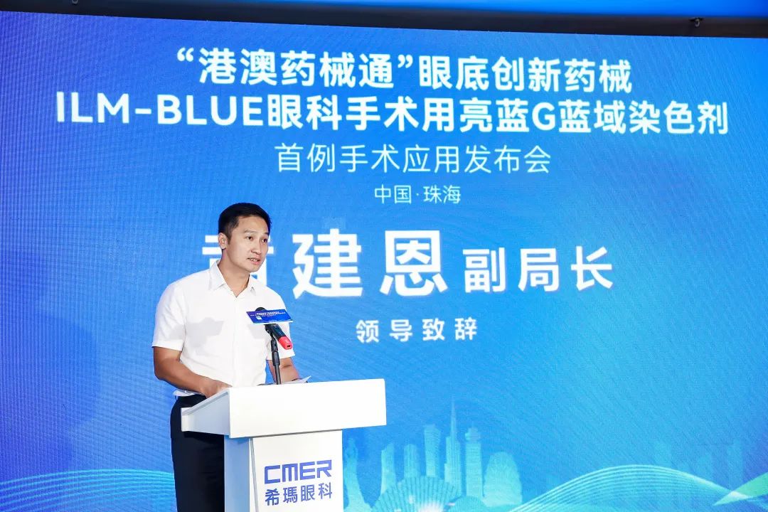 10月23日,由珠海市市场监督管理局指导,香港希玛国际眼科医疗集团、珠海希玛林顺潮眼科医院、荷兰眼科研究中心(DORC)、华润广东医药有限公司共同主办的“港澳药械通”眼底创新药械ILM-BLUE眼科手术用亮蓝G蓝域染色剂首例手术应用发布会在珠海圆满举行。