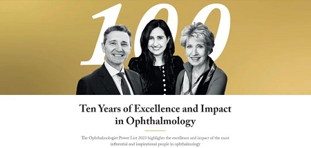 2023年是"世界最具影响力眼科人物100强"榜单的第10期,特别推出"近十年卓越成就和影响力"主题,提名过程重点强调候选者过去十年中在眼科这六个领域的卓越成就和影响力的细节/事例:研究、创新、教学和指导、实践进步、沟通宣传以及人道主义.该评选由读者广泛提名,经20位眼科专家评审团选出100名近10年在眼科领域取得突出成绩的学者,结合学术指标进行评分排名,所有过程均为匿名,因此在世界范围内有很高的可信度.